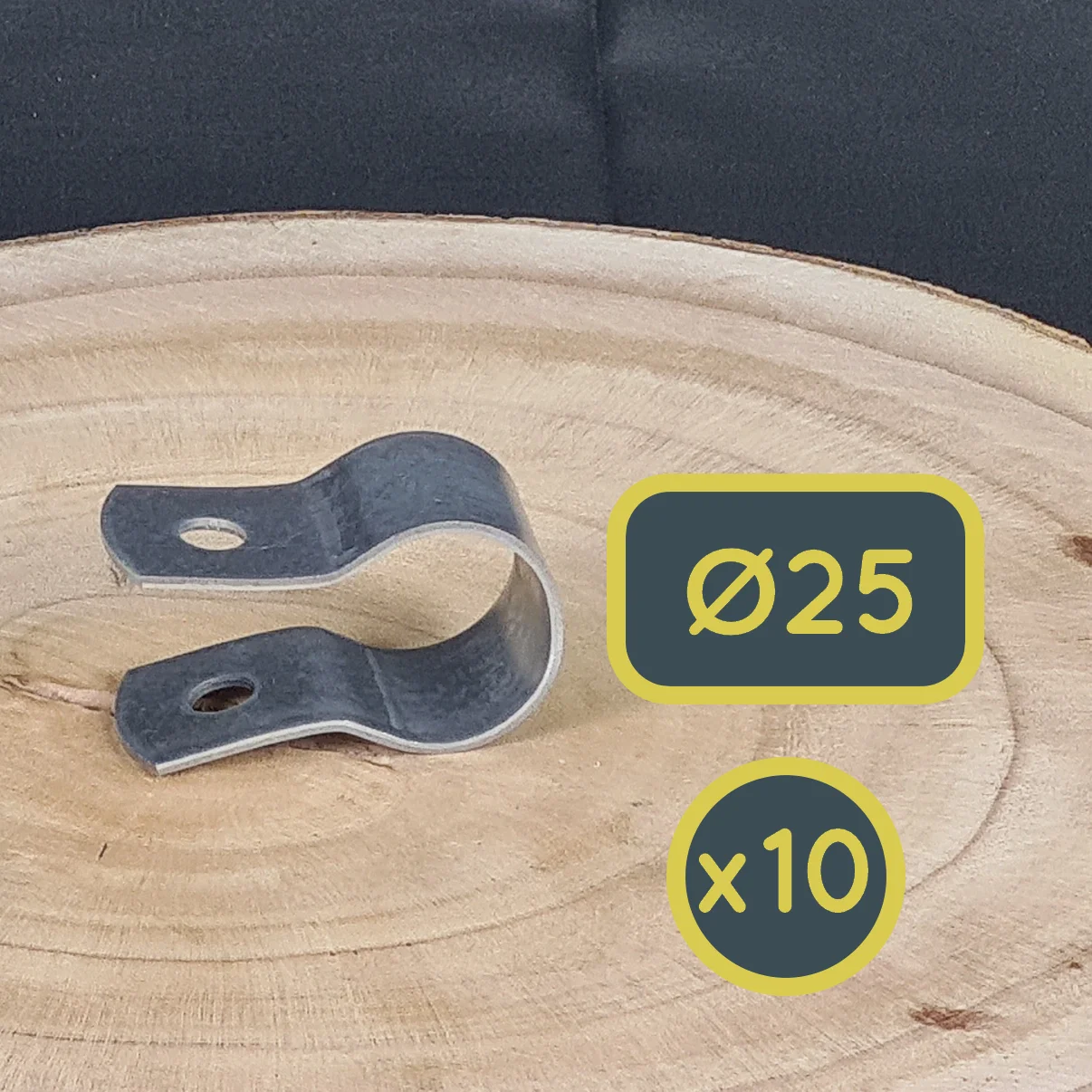 Collier pour tube Ø25mm, fourni avec sa vis à tête hexagonale de 8x40mm, et son écrou.